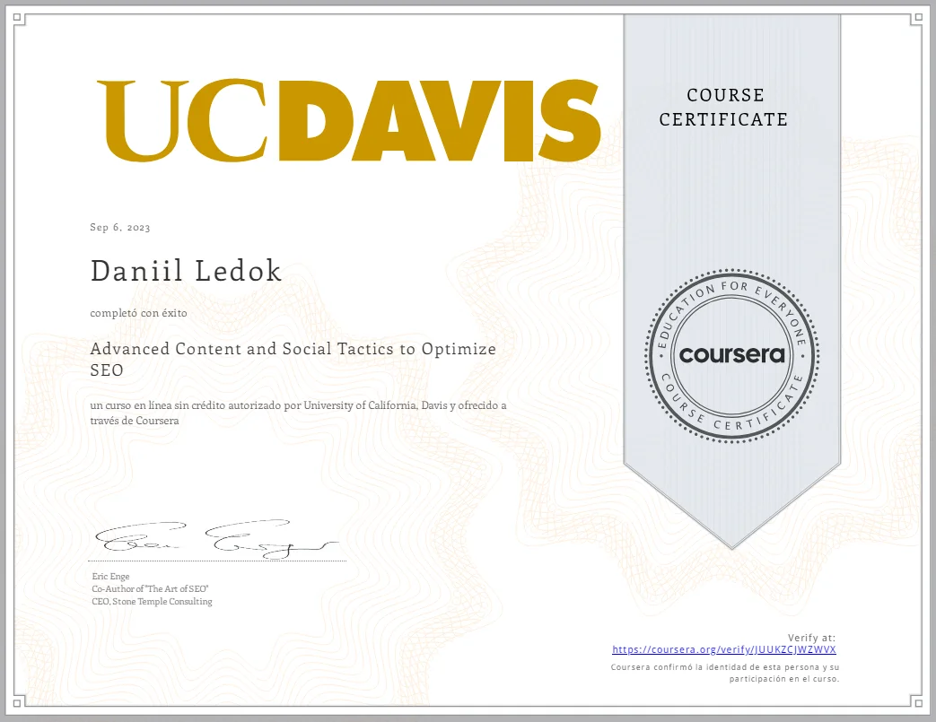 With more than 15 years of experience in SEO, my goal is to help you position your website so you get more traffic and customers. I am proficient in tools such as SEMrush, Google Search Console, Ahrefs, and more, backed by SEO training certificates from prestigious institutions. Maximize your visibility on the web and increase your business opportunities with my specialized services!